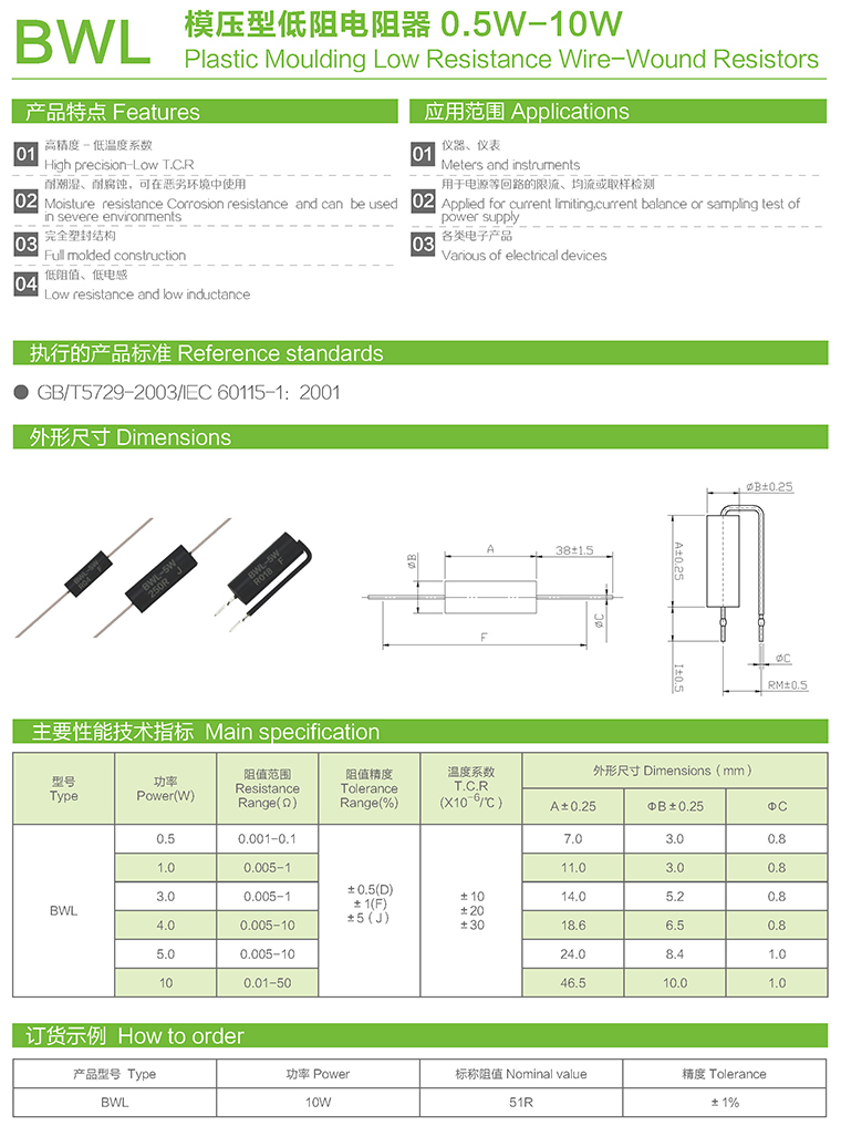 BWL模压型低阻电阻器
