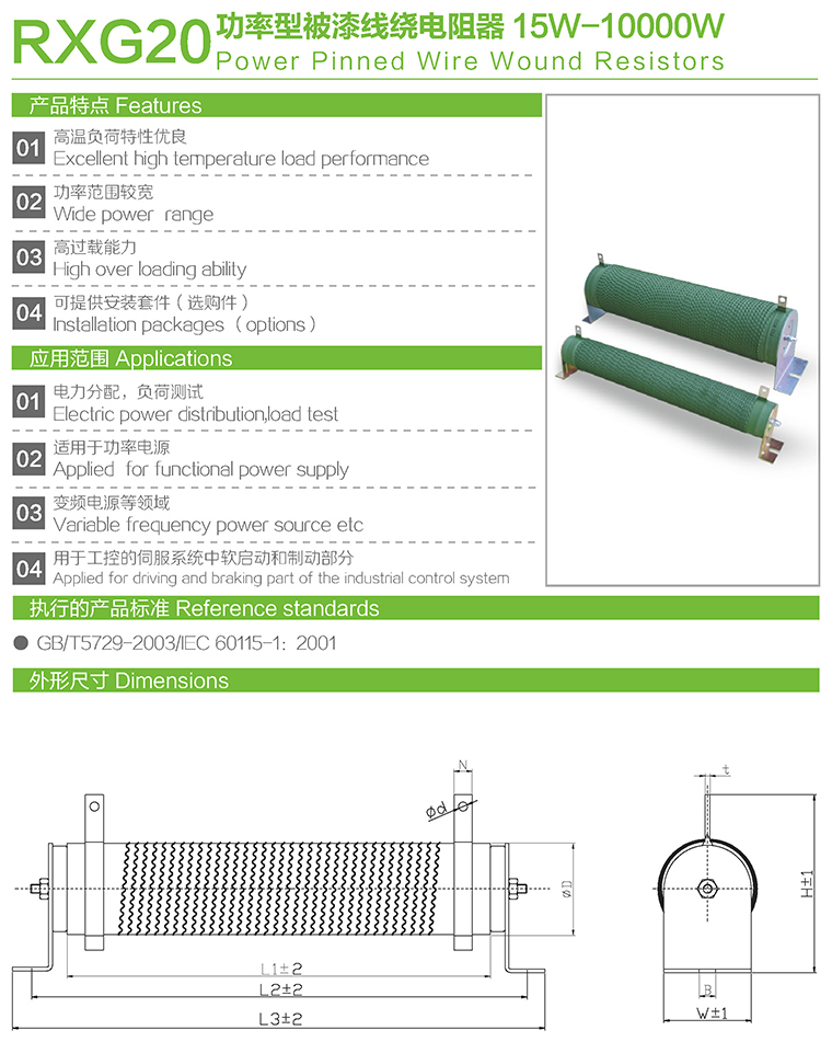 RXG20功率型被漆线绕电阻器